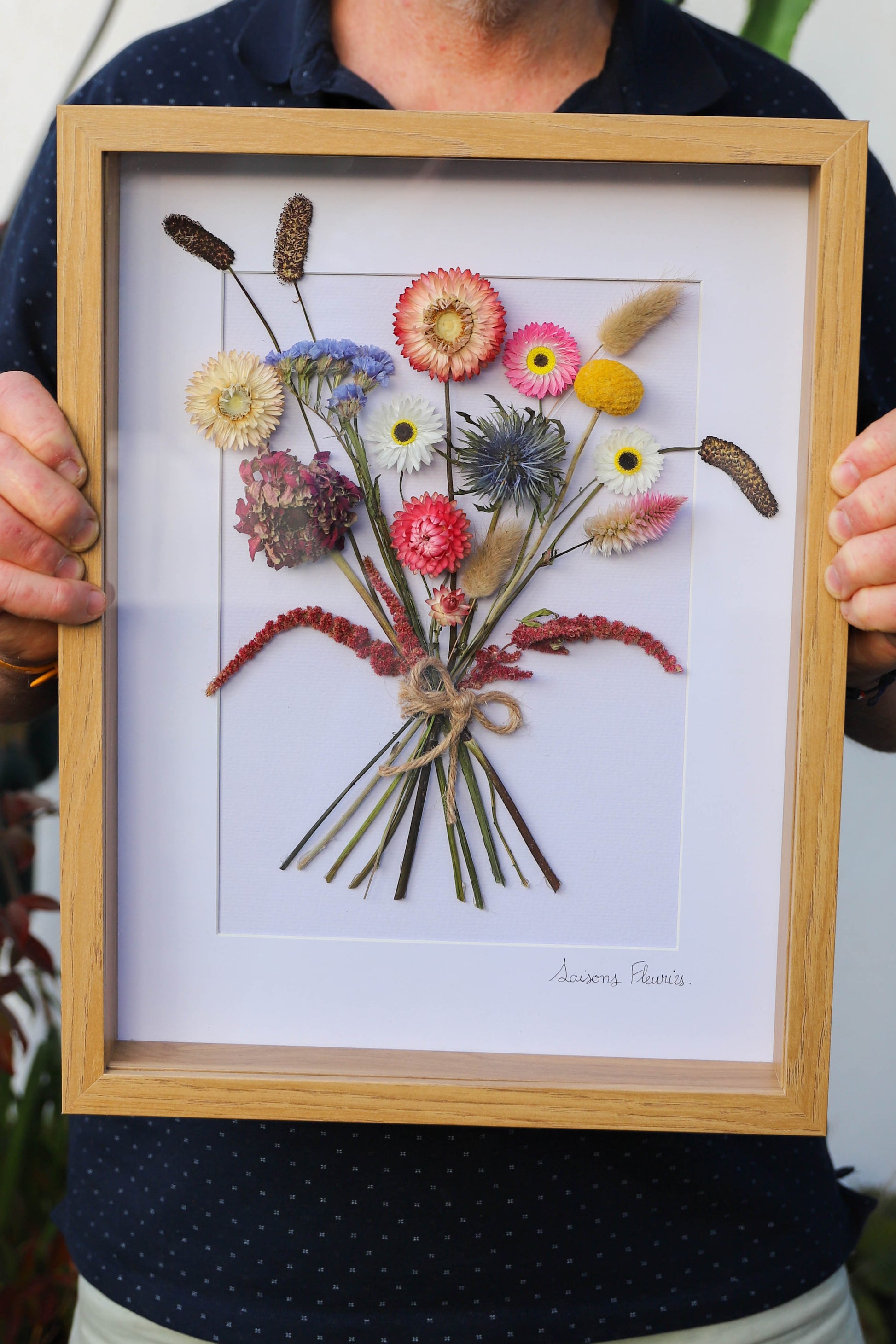 L'épaisseur du cadre permet de jouer avec l'effet de profondeur et de disposer les fleurs sans les écraser.
